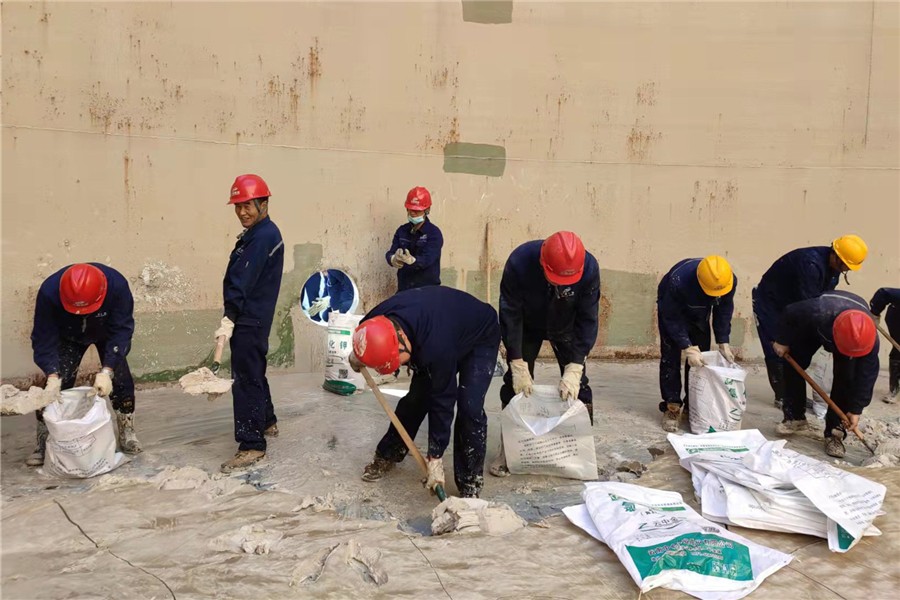 清理現(xiàn)場(chǎng),大家分工協(xié)作,一部分人進(jìn)入罐內(nèi)把淤泥裝袋運(yùn)至人孔處,另一部分人在罐外接運(yùn)淤泥到堆放處。無(wú)論是男同志,還是女同志,面對(duì)潮濕的環(huán)境,面對(duì)漫過(guò)腳背的淤泥積水,裹滿褲腿的泥巴,沒(méi)有一名隊(duì)員退縮,他們戴上手套,拿起工具,沖鋒在清淤的最前沿,用高昂的工作激情詮釋著黨員風(fēng)采。通過(guò)大家的辛勤勞動(dòng),清除了罐內(nèi)淤泥,沉積的鈣鎂泥沙得到有效改善。