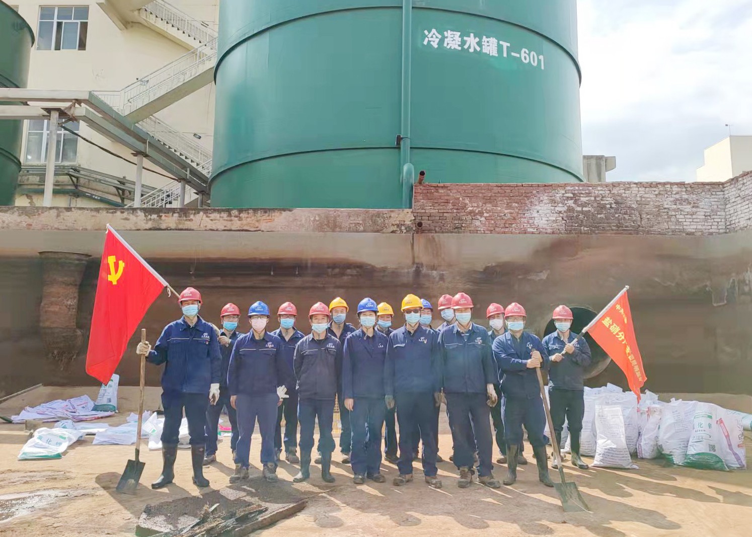 鹽硝分廠黨支部開(kāi)展“清淤泥、除隱患”主題黨日活動(dòng)。4月20日,鹽硝分廠黨支部組織黨員、管理人員和部分員工對(duì)30萬(wàn)噸蒸發(fā)裝置熱水池吸水口地坑淤泥進(jìn)行清理?;顒?dòng)中,大家不怕臟、不怕苦、不怕累,有的用鐵鍬鏟,有的用掃帚清掃,有的忙著把銹渣、淤泥等裝袋,有的把裝袋的垃圾吊到池外。通過(guò)大家的辛勤勞動(dòng),30萬(wàn)噸熱水池池底銹渣、淤泥得到了清理,池內(nèi)衛(wèi)生得到有效改善。
