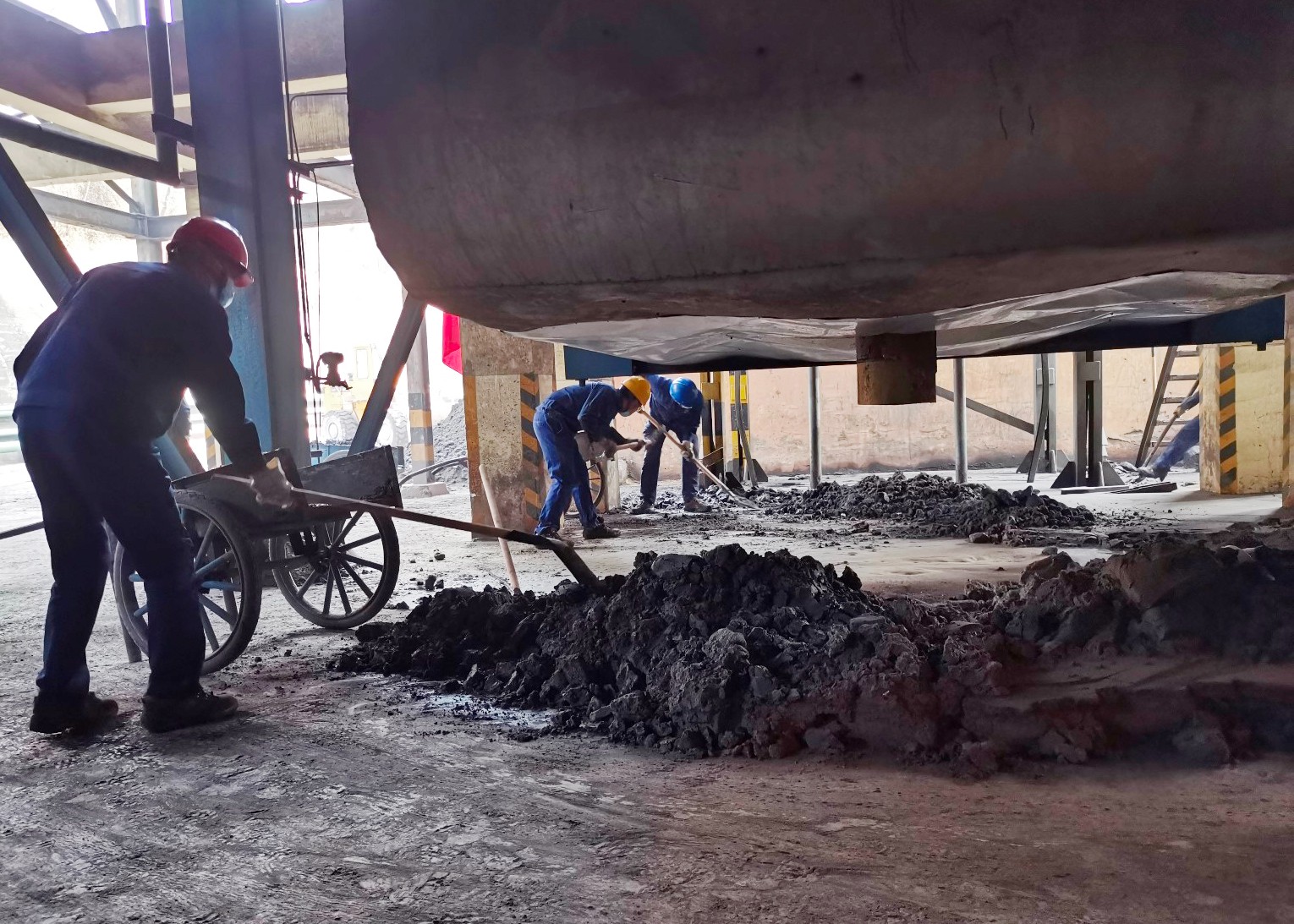 整個(gè)清理過(guò)程中,大家用鏟子把帶水的煙塵泥一鏟一鏟裝進(jìn)手推車(chē)?yán)?,又通過(guò)手推車(chē)一車(chē)一車(chē)的推至場(chǎng)外空地上,并對(duì)鍋爐裝置區(qū)域地面進(jìn)行全面清理。雖然作業(yè)區(qū)域空間低矮、作業(yè)困難,但大家分工合作、干勁十足,在黨員的帶動(dòng)下,團(tuán)員青年更是充分表現(xiàn)出了年輕一代的生機(jī)和活力。經(jīng)過(guò)近2個(gè)小時(shí)的清理,數(shù)十噸帶水的煙塵泥全部從2#鍋爐裝置區(qū)清除。清理后的現(xiàn)場(chǎng)變得干凈清潔,不僅消除了鍋爐下部的安全隱患,同時(shí)為后續(xù)2#鍋爐啟爐工作創(chuàng)造了有利條件。