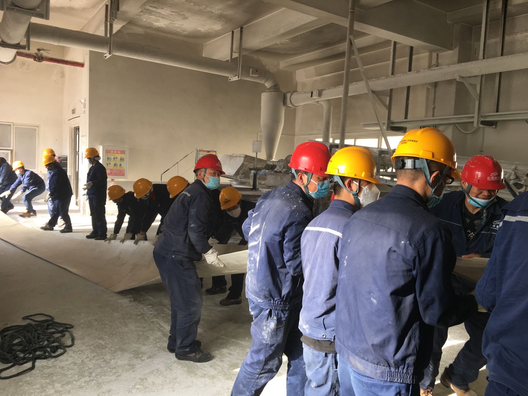 針對(duì)104皮帶更換任務(wù)重、需要人手多的情況,3月28日,包裝分廠黨支部組織黨員突擊隊(duì)參與104皮帶更換工作,為檢修工作提供有力保障。檢修現(xiàn)場,突擊隊(duì)的同志卯足干勁,不畏困難,最終順利完成104皮帶更換。截至28日,包裝分廠完成的檢修工作主要有11.5米層皮帶機(jī)滾筒加油,302、104、1#皮帶軸承更換,104號(hào)皮帶更換,氣力輸送管道清吹及密相器檢修,安全篩和混料機(jī)檢修,加碘加松系統(tǒng)檢修,除塵系統(tǒng)清理、料倉清理、接收倉清理及包裝機(jī)排鹽,鹽、硝噴碼機(jī)維護(hù)等。