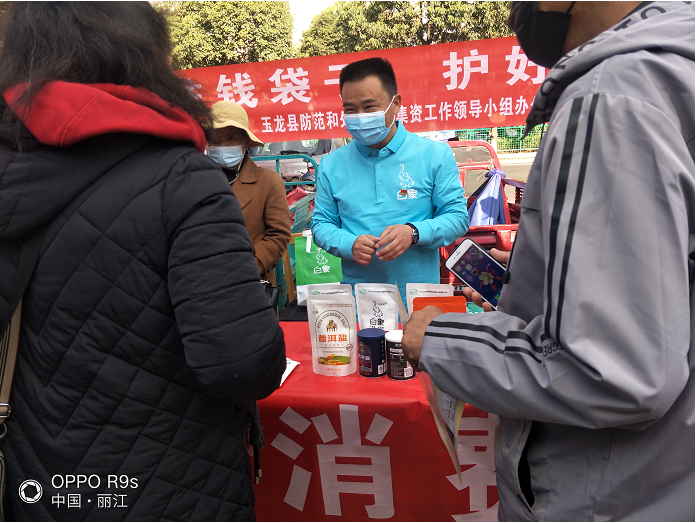 3.15是一年一度的“國(guó)際消費(fèi)者權(quán)益保護(hù)日”,今年的活動(dòng)主題為“共促消費(fèi)公平”。麗江銷售部圍繞活動(dòng)主題和今年以來查處的3起假鹽事件,配合麗江市、永勝縣、寧蒗縣、玉龍縣市場(chǎng)監(jiān)督管理局、工信局等單位對(duì)《消費(fèi)者權(quán)益保護(hù)法》、《云南省消費(fèi)者權(quán)益保護(hù)條例》、《食品安全法》、《食鹽質(zhì)量安全監(jiān)督管理辦法》等法律法規(guī)以及食鹽追溯碼的使用進(jìn)行宣傳,對(duì)真假鹽識(shí)別進(jìn)行講解,對(duì)消費(fèi)者密切關(guān)注的安全用鹽、科學(xué)用鹽等方面的問題進(jìn)行現(xiàn)場(chǎng)答疑,對(duì)購(gòu)買安全食鹽的渠道進(jìn)行介紹?;顒?dòng)期間共向消費(fèi)者發(fā)放食鹽用鹽安全宣傳單2500余份。