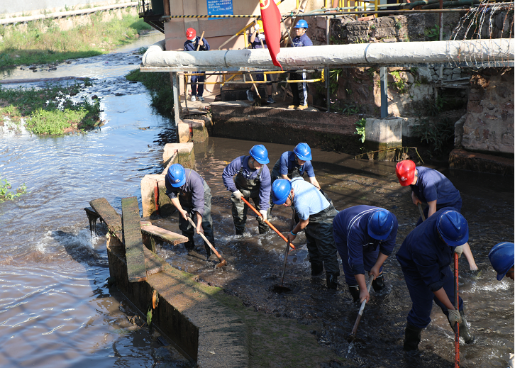 緊接著,大家來(lái)到制鹽車間水處理,面對(duì)被淤泥、砂石填滿的取水口主動(dòng)請(qǐng)戰(zhàn),他們拿上鋤頭、鐵鏟,顧不上冰涼河水,爭(zhēng)先恐后的跳進(jìn)水里,你一鋤我一鏟清理起砂石、淤泥、雜物,遇到沉積在河底的垃圾,就徒手撕拉清理,盡管翻出的垃圾散發(fā)出陣陣惡臭,泥水浸濕了褲、鞋,但沒(méi)有人嫌臟怕累,勞動(dòng)熱情絲毫不減,連續(xù)奮戰(zhàn),13:00,取水口在他們不懈努力下變得清潔通暢,順利完成此次活動(dòng)任務(wù)。
