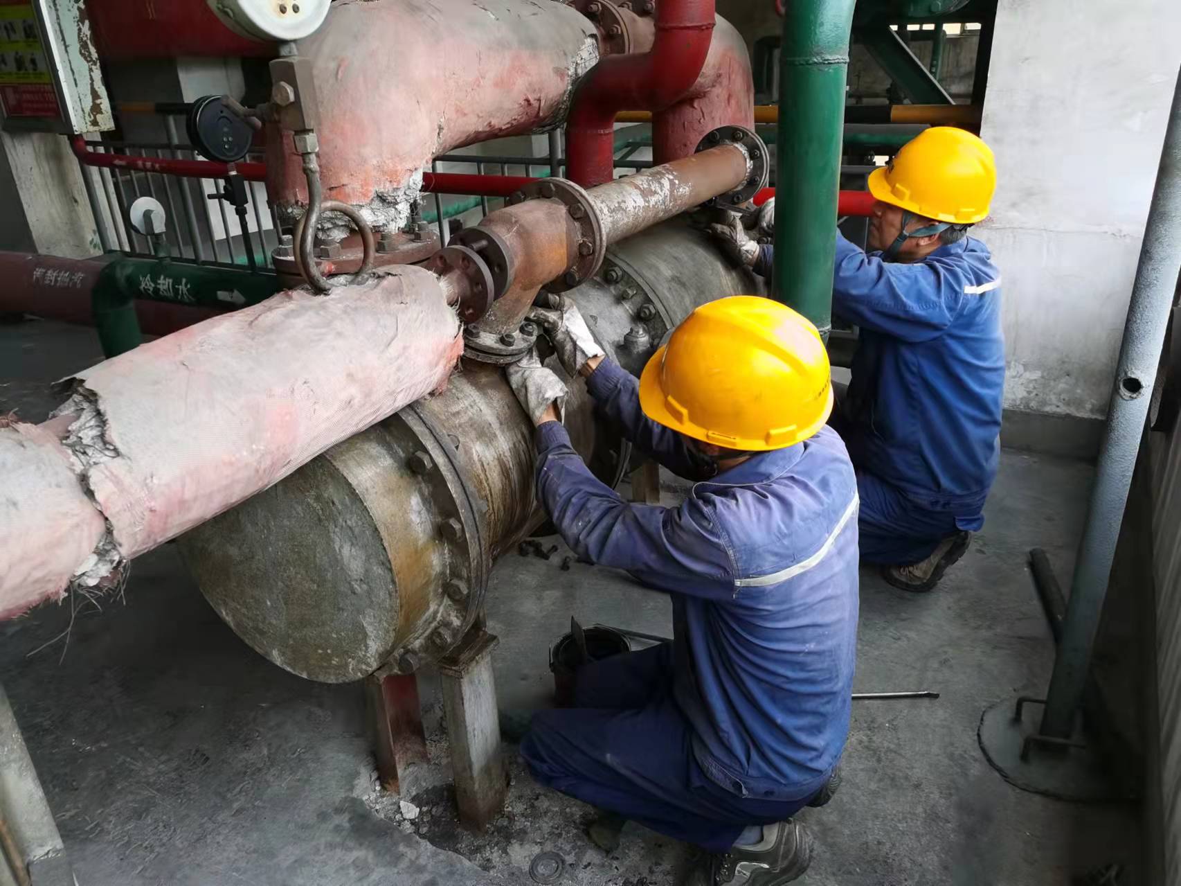 動力分廠6MW汽輪發(fā)電機(jī)及其相關(guān)輔助設(shè)備檢查維護(hù)工作是利用制鹽30萬噸裝置檢修停車時機(jī)開展的。制鹽30萬噸裝置按計劃停車后,動力分廠6MW汽輪發(fā)電機(jī)同時安排停機(jī)并開始了檢修前的準(zhǔn)備工作。根據(jù)分廠檢修計劃安排,為了確保檢修工作如期完成,分廠從汽輪機(jī)崗位抽調(diào)了6名人員組成一個團(tuán)隊(duì)全力配合汽輪機(jī)相關(guān)設(shè)備管道的檢查和維修工作,他們當(dāng)中有黨員、有團(tuán)員、有操作能手,在黨員的帶動下團(tuán)員青年和操作能手積極配合,每天按計劃完成相應(yīng)的檢修工作任務(wù)。經(jīng)過大家的努力,收稿前已先后完成了濾油機(jī)真空泵清洗、空冷器清洗、中壓減溫減壓裝置管道閥蘭墊子更換和中低壓減溫水老舊手動調(diào)節(jié)閥門更換等主要工作任務(wù),現(xiàn)正全力組織進(jìn)行汽封抽汽器疏通找漏。預(yù)計到明天下午汽輪機(jī)崗位所有檢修項(xiàng)可如期完成。