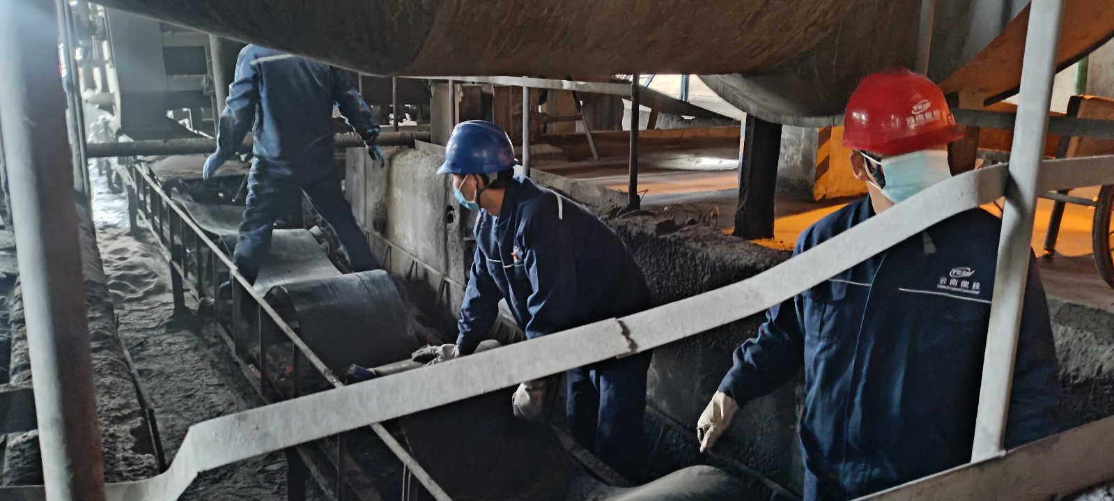 早上8:10分左右分廠檢修人員開始準備檢修材料,同時運維機修巴長帶領(lǐng)機修運維人員進入檢修現(xiàn)場做檢修前的準備工作。本次需要更換的皮帶長68米,寬0.5米,損壞需要的滾筒20多只,由于檢修現(xiàn)場設(shè)備管道多,輸送皮帶位置又在地坑中,作業(yè)空間狹窄受限,只能通過人力進行皮帶搬運及皮帶更換,因此需要大量的人力。8:50分左右分廠支部收到信息后發(fā)出號召,組織了十幾名黨員干部職工趕赴作業(yè)現(xiàn)場配合檢修人員開展出渣系統(tǒng)輸送皮帶及滾筒的更換工作。在大家的共同努力下大約用了兩個小時75t/h1、2#鍋爐出渣皮帶更換作業(yè)順利完成。