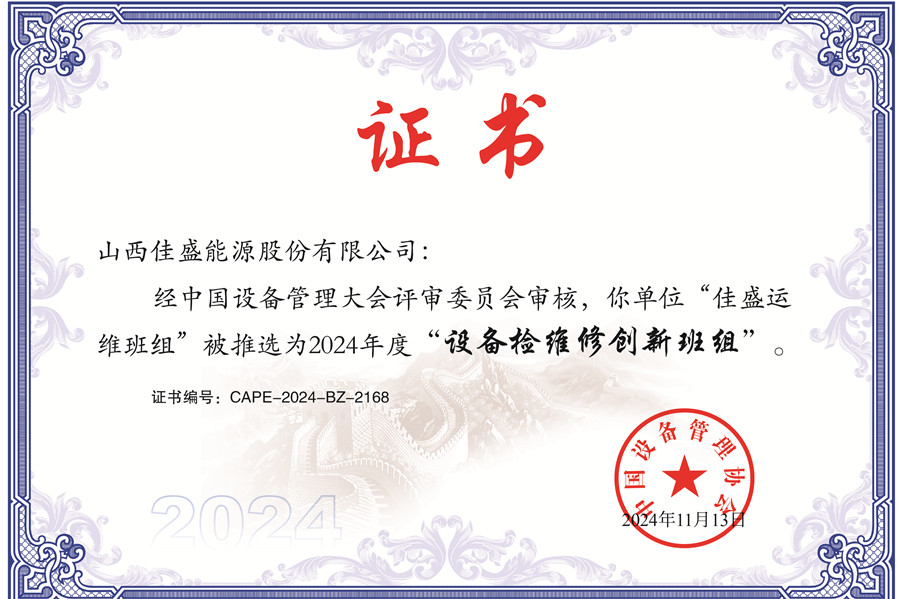 榕耀山西公司所屬8個電站全部榮獲中國設(shè)備管理協(xié)會“設(shè)備檢修創(chuàng)新班組”榮譽稱號