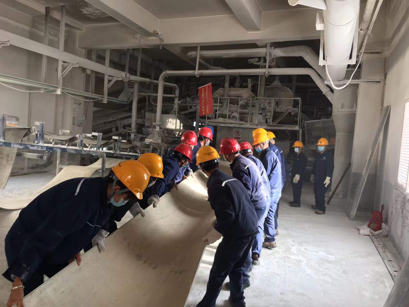 包裝分廠黨支部以黨員為骨干,開展“黨員突擊隊助力大檢修”主題黨日活動。完成老包裝樓11.5米層五條皮帶的更換。包裝分廠黨支部組織黨員和部分員工配合修理組集中在11.5米層對本次檢修的重點項目302、102、103、2#、3#五條皮帶進行更換。檢修現(xiàn)場,活躍著一群能吃苦、能奉獻、能攻堅的基層黨員隊伍,充分踐行“我是檢修一塊磚,哪里需要哪里搬”的先鋒精神。檢修中廣大黨員踴躍參與、沖鋒在前,極大的提高了全體檢修人員的積極性,大家都干勁十足,他們不怕苦、不怕累,用實際行動彰顯了黨員先鋒帶頭作用。分廠女員工巾幗不讓須眉,積極參與到皮帶更換的工作中。在全體檢修人員的共同努力下,下午15:00,五根受損皮帶拆除完畢,302、102、103、2#、3#新皮帶全部就位。